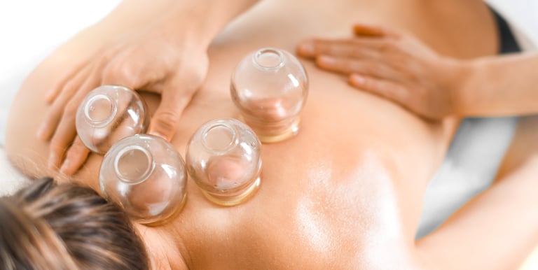 Cupping therapy is used as part of modern soft tissue treatment to support recovery and improve circulation.
